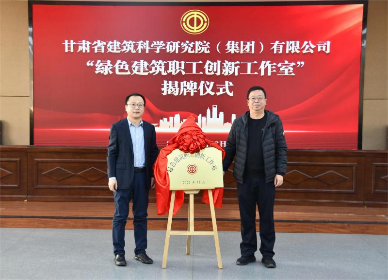 甘肃建科院“绿色建筑职工创新工作室”2022年4月申报,同年8月获批成立。2023年11月22日组织揭牌仪式。甘肃省建设工会工作委员会主任杜晓烽、甘肃省住房和城乡建设厅科技教育处副处长栗军平、甘肃建投工会副主席、群众工作部部长葛泽一行出席仪式,甘肃建科院领导班子成员和各部室负责人参加仪式。甘肃建科院纪委书记、工会主席赵欣主持揭牌仪式。